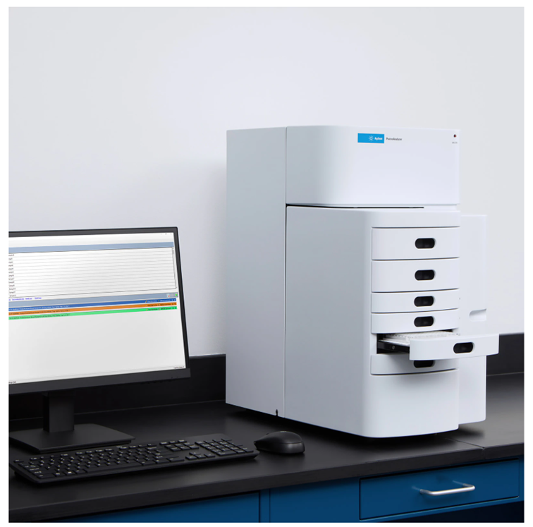 Agilent ProteoAnalyzer Systém je paralelní kapilární elektroforetický přístroj, který automatizuje analýzu redukovaných a neredukovaných proteinových vzorků pomocí kapilární elektroforézy s dodecylsulfátem sodným (CE-SDS). Tento systém, který dokáže separovat 12 vzorků za pouhých 30 minut, je navržen tak, aby eliminoval pracný proces přípravy SDS-PAGE gelu, barvení/odbarvování a analýzy, abyste se mohli soustředit na výsledky.