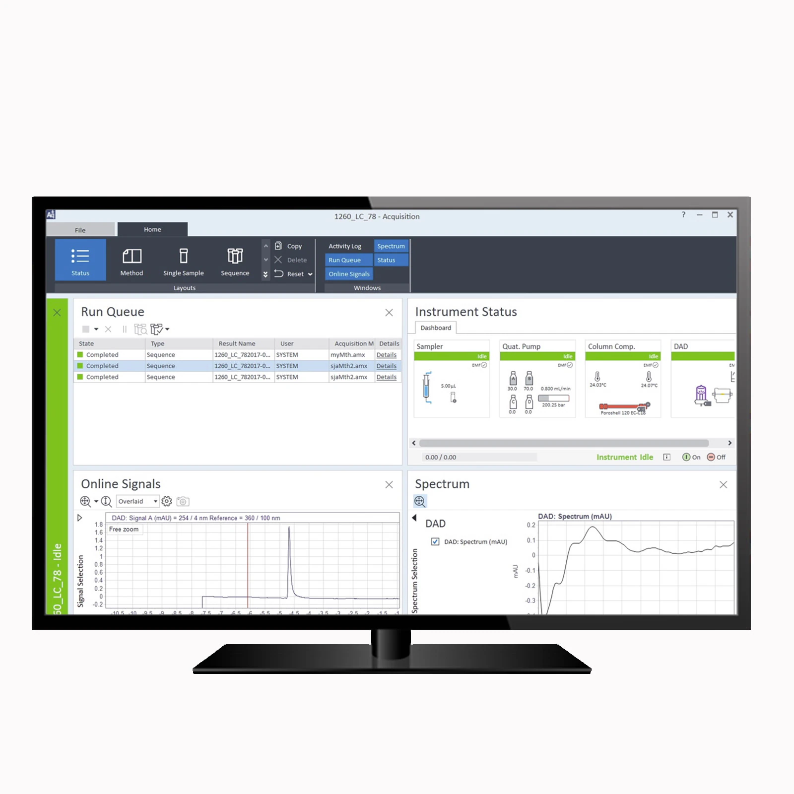 - Pełny podgląd laboratorium – monitorowanie statusu wszystkich instrumentów w sieci CDS z poziomu jednego interfejsu użytkownika.