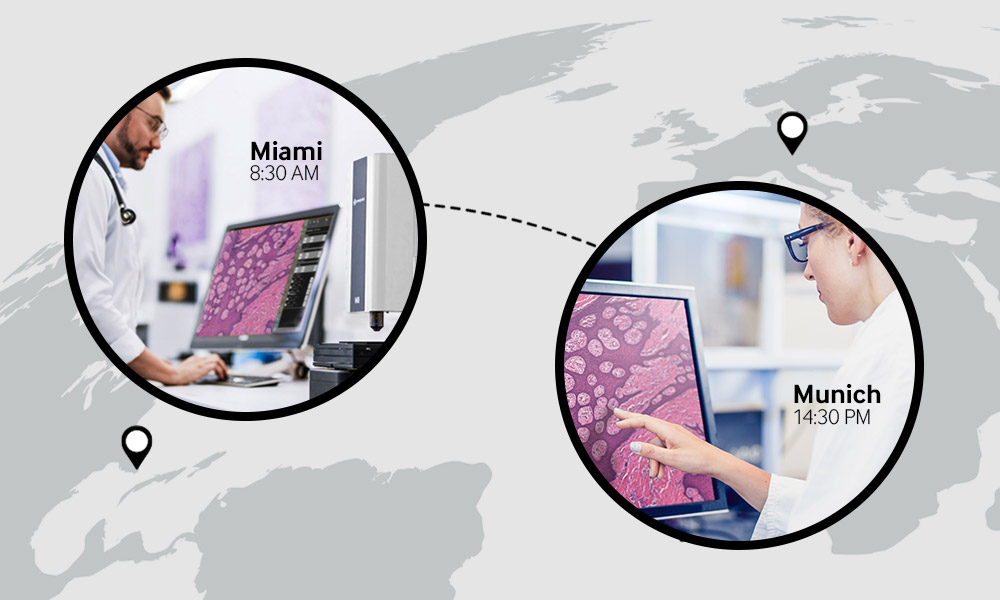 Consultările intraoperatorii sunt critice ca timp. Cu iO:M8, lamele devin vizibile instantaneu pentru o evaluare microscopică rapidă, fără a aștepta un Whole Slide Image (WSI). Ca specialist, poți interpreta imaginea live imediat, direct pe monitor.